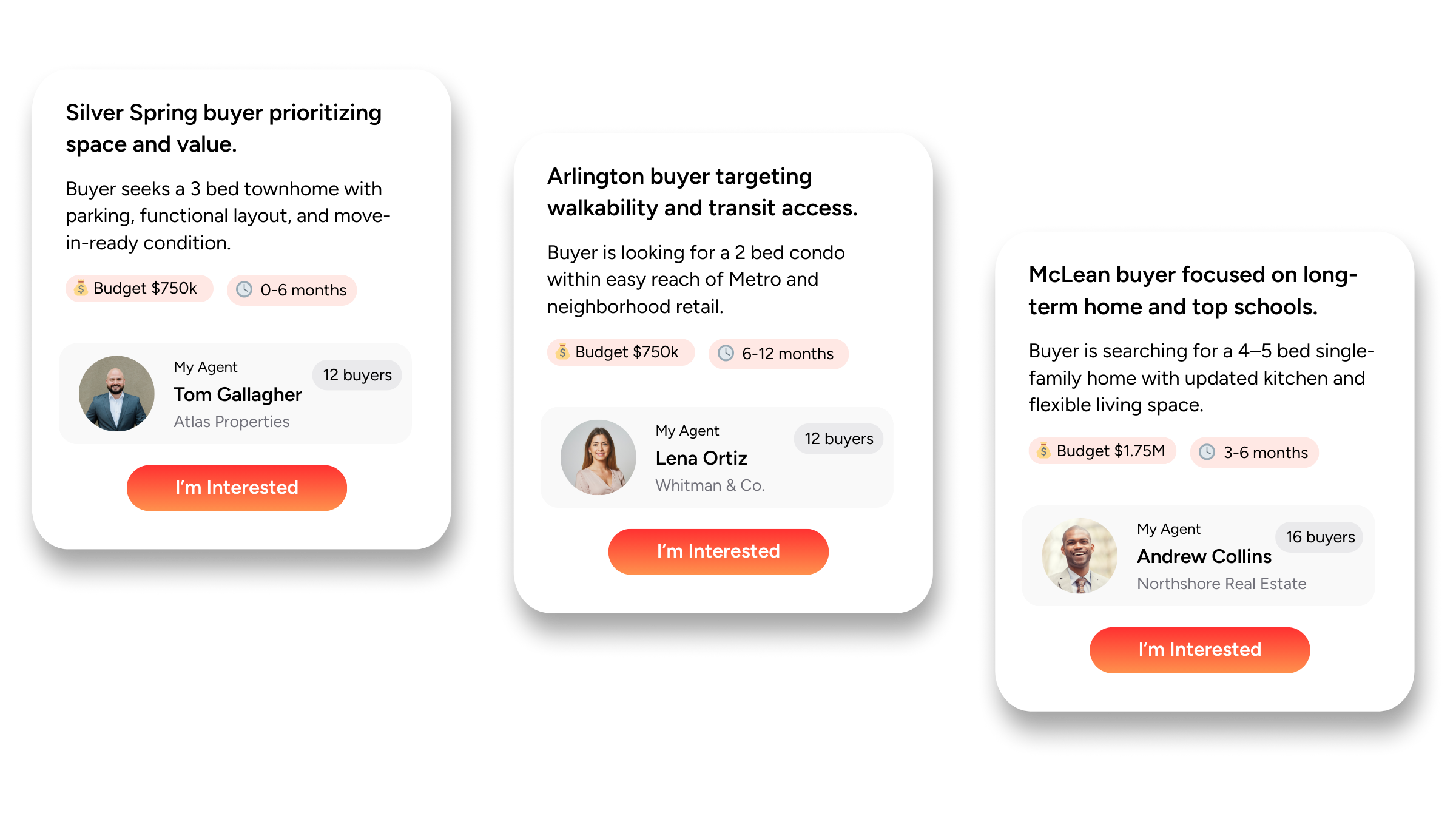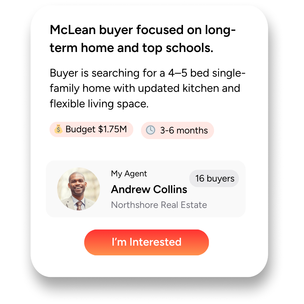 Find qualified home buyers in your area, each represented by a licensed agent.